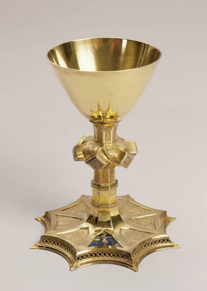 Mit dem Baubeginn des gotischen Doms 1248, der nach dem Vorbild französischer Kathedralen schrittweise den Vorgängerbau ersetzte, hielt in Köln, das bisher durch seine romanischen Kirchen geprägt war, ein neuer Stil machtvollen Einzug. Vollendet wurde der Dom nach den mittelalterlichen Plänen erst 1842-1880, doch sein Chor im Osten und der südliche Fassadenturm stammen noch aus der Gotik des 13. und 14. Jahrhunderts. Die Wände der Kathedrale bestehen fast nur noch aus Glasfenstern, die als Träger leuchtender Bilder nun eine neue Blütezeit erfahren. Gehalten werden sie durch ein geometrisch kunstvolles Rahmenwerk aus Stein, bei dem die Pfeiler und Fensterrahmungen durch ein nach außen gerichtetes Stützenwerk, die Strebepfeiler, gehalten werden. Elfenbeinschnitzereien und Goldschmiedearbeiten der Gotik greifen diese Formen in der Gestalt von Mikroarchitekturen auf. Schon zuvor galt das Kirchengebäude als ein Symbol der in der Apokalypse des Johannes beschriebenen Paradiesstadt des Himmlischen Jerusalems. Den vertikal emporstrebenden Formen der Architektur entspricht in der Skulptur der Gotik eine Betonung der Körperachsen und der Räumlichkeit der Figuren. Im Museum Schnütgen sind zahlreiche Meisterwerke der Gotik und auch einige in der Barockzeit verworfene Teile der Ausstattung des Domes, wie die Figuren vom 1322 geweihten Hochaltar und die Fragmente des Sakramentstabernakels zu erleben.