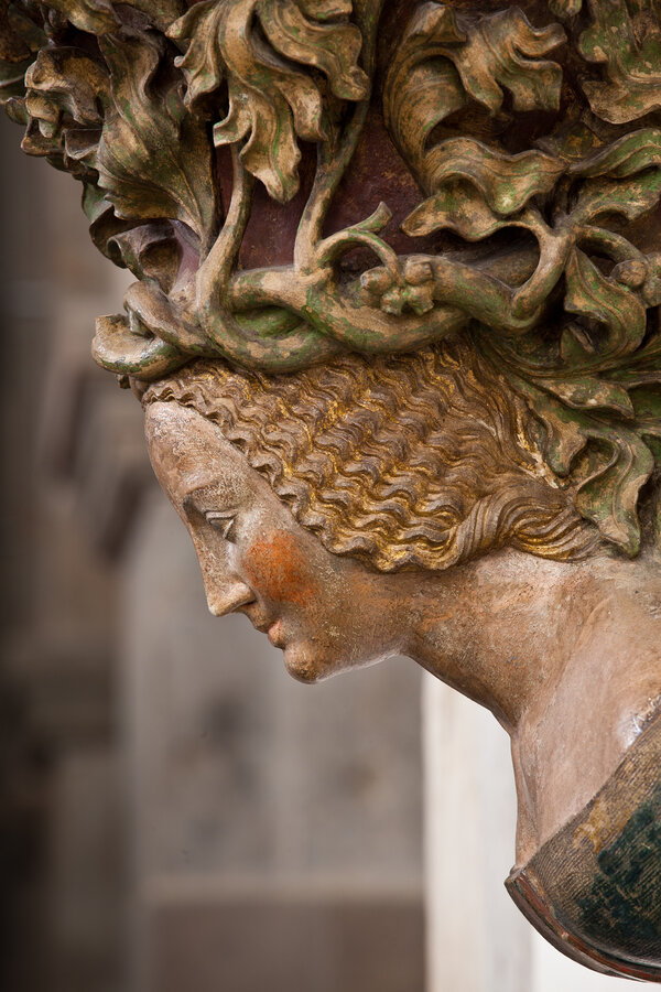 Konsolbüste mit dem Parlerwappen, Köln, um 1390